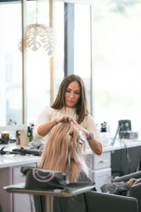 We’ll order your custom extension hair — premium, ethically sourced Remy human hair in the exact color blend to match or enhance your natural shade. Color matching is done with precision by our blonding and color specialists.